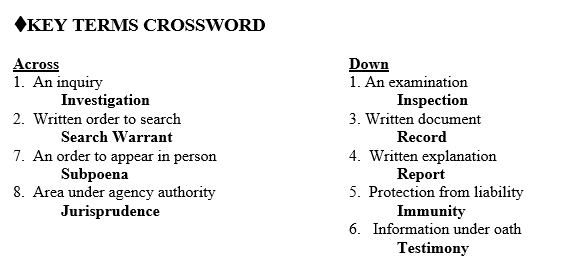 Agencies make decisions after information is gathered during agency investigations. (P.190-191)
