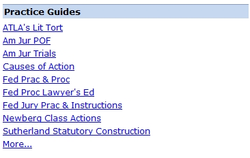 While your subscription does not allow access to all of the above, fortunately you will have access to the most important of these sources. The most useful will be Am Jur Proof of Facts, Am Jur Trials, Causes of Action, and Federal Practices and Procedures.